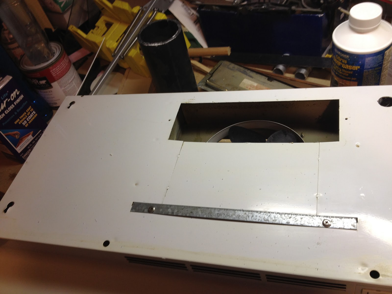Leaving a rectangular exhaust port behind the fan. My hose is round, so I need to make an adaptor.